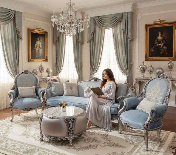 4,450,000ديناريتكون من ثلاثية عدد2 مفردات عدد 4 وطبلات عدد1 هيكل خشب زان ذو متانه عالية القماش نوعية فاخرةقياسات طخم كلاسك مصري فيروز الثلاثيه الطول ٢٢٠ سمالعمق ٨٨ سمالارتفاع ٩٧ سم المفردهالعرض ٧٠ سم العمق ٨٠ سم الارتفاع ١١١ سم الطبله الوسطيه الارتفاع ٥٠ سم العرض...4,450,000دينار -